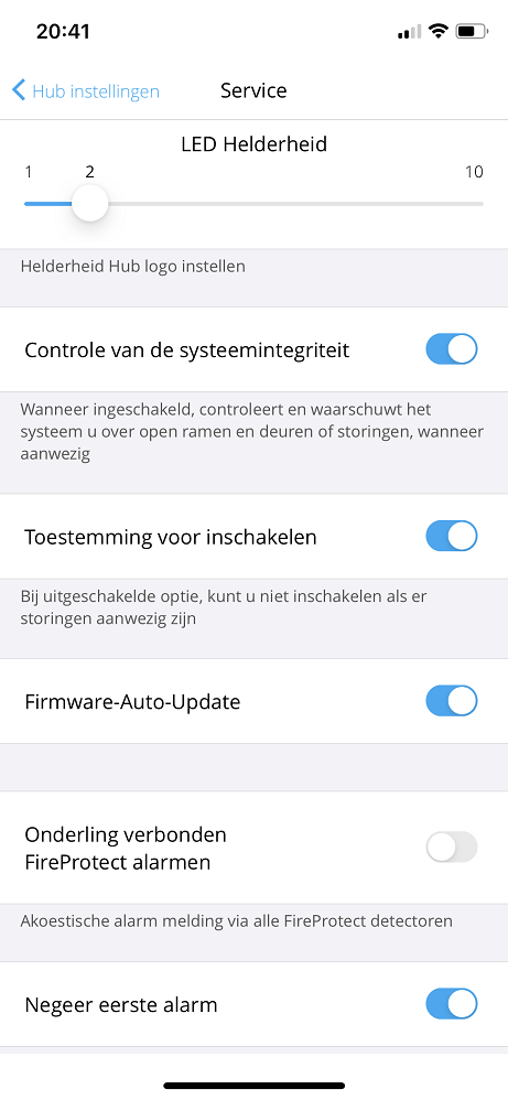 LET OP: De instelling “Controle van de systeemintegriteit” moet zijn ingeschakeld, je vindt dit in de HUB bij instellingen -> Service
