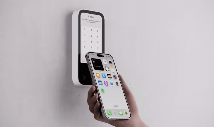 Draadloos bedieningspaneel met touchscreen en contactloze autorisatie.